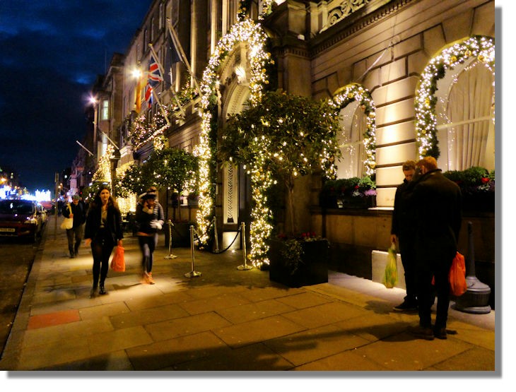 The venerable George Hotel (now branded as "The Principal Edinburgh" has added to its display of lights this year. Originally built in the 1780s as individual town houses, the buildings have been insurance offices, lodgings, and an artist's studio as well as a hotel.