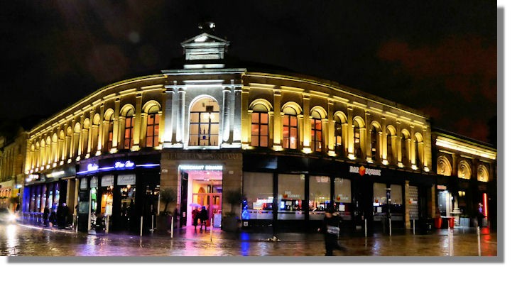 Another old building that has been given a new lease of life is the original "Fruit Market" in the Merchant City area. It was left empty when the fruit market traders moved to a custom-made building away from the city centre. For a while it remained empty - I recall parking my Ford "Anglia" in a car park within the building when I worked on the city centre, many, many years ago. But now it has had a major refurbishment and proudly carries carved stones proclaiming that is on "Merchant Square" and on the top another carving states that it was rebuilt in 1886!