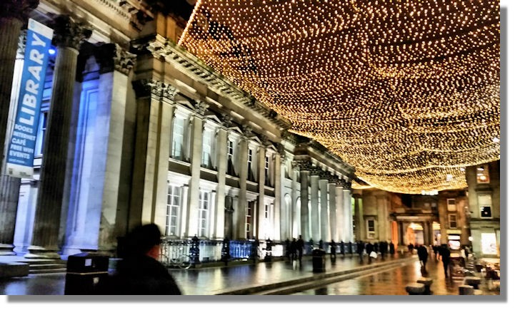 The "Ceiling of Light" which fills in the pedestrian precinct surrounding the Gallery of Modern Art (GoMA) will remain to brighten the spirits in the hours of darkness until March. In these days when we are all being encouraged to go "green", the thousands of lights have been replaced with more energy-efficient LED bulbs.