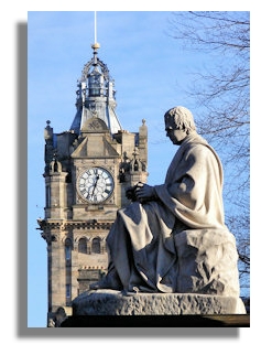 Scott's management of his financial affairs left much to be desired. He was extravagant both in expanding his baronial country mansion at Abbotsford in the Borders and in buying historical Scottish artefacts. In 1826 he found himself 100,000 pounds in debt. From 1827 to 1831 we worked furiously to produce work which would pay off his debts. He had cleared 70,000 pounds by the time he died in 1832 and the remainder was paid by selling copyrights. In 1840 a grateful nation erected a magnificent monument to him in Princes Street Gardens, Edinburgh.