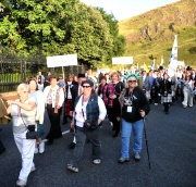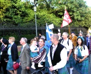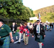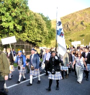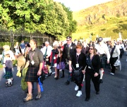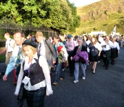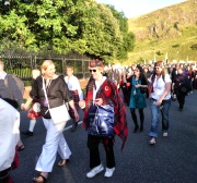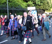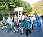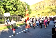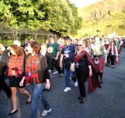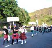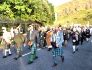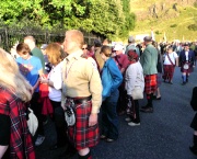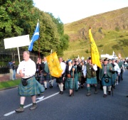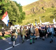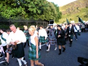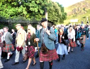 "The Gathering" and the march of the clans was the highlight of Homecoming Scotland 2009 in Edinburgh on 25 July 2009. Around 8,000 marchers from over 125 clans, interspersed by seven pipe bands walked up the historic Royal Mile from the Palace of Holyroodhouse, beside Salisbury Crags, to the castle.