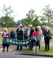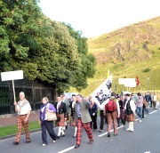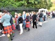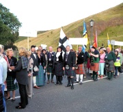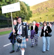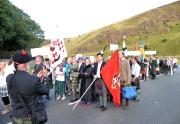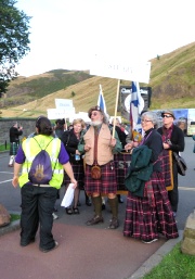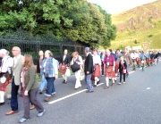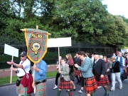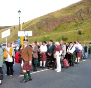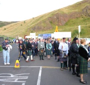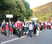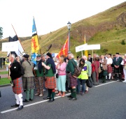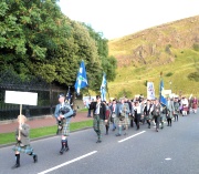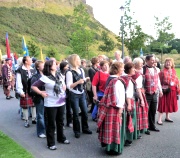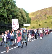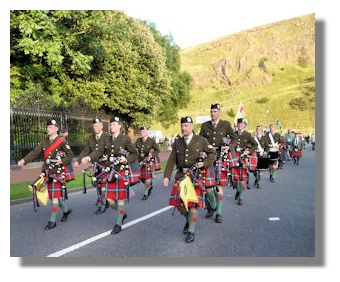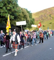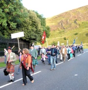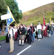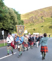 "The Gathering" and the march of the clans was the highlight of Homecoming Scotland 2009 in Edinburgh on 25 July 2009. Around 8,000 marchers from over 125 clans, interspersed by seven pipe bands walked up the historic Royal Mile from the Palace of Holyroodhouse, beside Salisbury Crags, to the castle.
