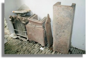 This piece is perhaps one of the most unusual in the Abbotsford collections and symbolises the unique character and wit of Sir Walter Scott´s interiors. Stylistically, the carved architectural ornaments on the top imitate those found on Georgian longcase clocks made from woods such as mahogany and oak. However this example is unique in being entirely hewn from local sandstone. The finished product is testament to the considerable skill of the mason responsible for sculpting the three individual sections that lock together. Mortise and tenon joints ordinarily found in carpentry have been expertly recreated in stone, complete with a hinged sandstone door allowing access to the pendulum within.