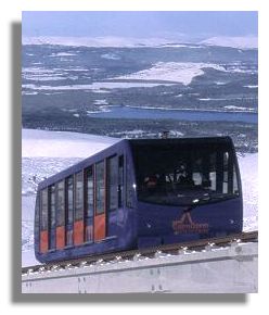 The 3,500 acre Cairn Gorm estate, which is currently owned by Highlands and Islands Enterprise, is being put up for sale. The land includes the spectacular mountain range of Cairn Gorm and the ski centre and funicular railway (illustrated here). It is thought unlikely to be sold to a private owner, but may be owned or managed by the community. A takeover by the Cairngorms National Park Authority is thought to be another possibility. Concern was expressed, however, about the estate becoming owned by a conservation body such as the Royal Society for the Protection of Birds - which fought a long battle against the funicular railway and the economic benefits it has brought. About one third of the area is leased to the company that operates the ski area and railway.