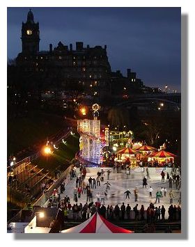 The picture shown here to illustrate the current season in Scotland is of the skating rink in Princes Street Gardens in Edinburgh. For further illustrations, see the "Colour Supplement" below.