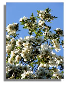 The illustration here is of a Eucryphia tree, covered in its white flowers at this time of year. The photo was taken earlier this week at Finlaystone Country Estate in Renfrewshire.