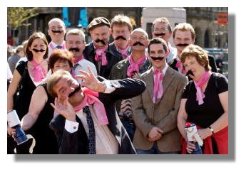 The organisers said it was a "new world Mackin-tache record" as more than 1000 people donned fake moustaches and pink cravats in Glasgow's George Square to launch the city's first Charles Rennie Mackintosh festival. Since nobody else has attempted a world record for the number of people dressed up as the architect, it went straight into the Guinness Book of Records. Those who took part in the launch were rewarded with free entry into a draw to win a Mackintosh-style chair worth £1000. The city is hosting more than 120 exhibitions, talks, tours, children's activities and dramatic performances throughout the year in honour of the designer - with the main events taking place in September.