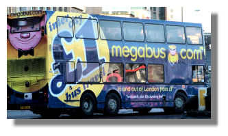 Perth-based transport group Stagecoach introduced a network of "Megabus" services covering nearly 40 major towns in the UK in September 2003, offering low-cost inter-city travel. Based on similar principles to budget airlines, tickets for journeys between nearly 30 of Scotland's cities and towns can cost as little as £1 - if booked far enough in advance. The services use high-capacity, double-decker, air-conditioned coaches and they have proved to be popular with students, families and "silver surfers" who use the Internet to book. Within seven months, the buses had carried a million passengers and now the company is investing £11 million to buy 45 of the latest coaches. They will be the first of their kind made in the UK and the 63-seat vehicles will be fitted with air-conditioning and toilets and will have a special lift for wheelchair passengers. The company is launching a campaign to persuade travellers to dump "gas guzzler" airlines and switch to intercity coach travel to destinations in England to minimise damage to the environment. Stagecoach claims that on a per-passenger basis, a Megabus is more than six times more fuel-efficient than air transport and produces seven times fewer CO2 emissions. Earlier this year, Stagecoach expanded megabus.com to the United States, with passengers being able to travel on daily non-stop express coach services between Chicago and a number of other mid-west cities for as little as $1.