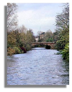 The illustration shows the high water in the river Kelvin in Glasgow.