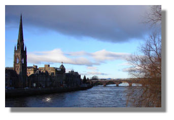 This week's large format photographs taken in Scotland to show the current season and its flora and fauna include views around Perth, including the river Tay, the High Street, statue of the "Fair Maid of Perth", the Fergusson Gallery (formerly a neo-classical style water works), St John's Kirk (see thumbnail) and whimsical animal sculptures on top of the walls of the flood defences. See this week's Colour Supplement.