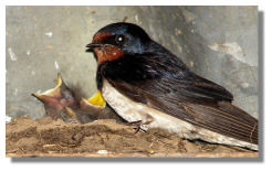 This week's large format photographs taken in Scotland to show the current season and its flora and fauna include the large flower heads of Teasel; a field of the purple flowers of Borage and a close-up of the "Star Flowers"; a second brood of Swallow chicks being fed (see thumbnail here); striking variety of Scabious or "Pincushion" flower; Rosebuds in the rose garden at Kinross House; red and the white flowers of Lavatera, the tree mallow.