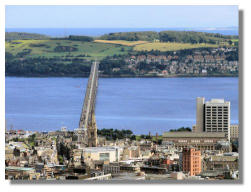 This week's large format photographs taken in Scotland to show the current season and its flora and fauna include Tay Road Bridge, Dundee, from the top of Dundee Law (see thumbnail); the Tay Rail Bridge, Clarkia amoena (or "Farewell to Spring" or Godetia amoena); Camperdown House, named after a famous naval victory by Scots-born Admiral Adam Duncan; Mesembryanthemum (also known as Dorotheanthus or Livingston Daisy); Dudhope Castle, Dundee (now the University of Abertay's Dundee Business School). See This Week's Colour Supplement