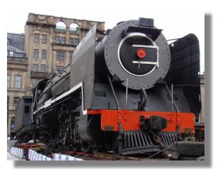 Anyone passing through Glasgow's George Square this weekend will be surprised to see a massive steam train "parked" there. It's a "Mountain Class" railway steam engine, which was built by the North British Locomotive Company in Polmadie in Glasgow in 1945. It is to take pride of place at the new Riverside Transport Museum being built in the city of its birth. The engine (Number 3007) pulled the renowned "Blue Train" from Johannesburg to Cape Town for over 40 years.