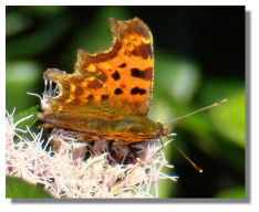 This week's large format photographs taken in Scotland to show the current season and its flora and fauna include a Comma Butterfly (see thumbnail here) - which gets its name from the white mark on its underside; Roses growing in the garden of Kinross House; Red Road High Flats, Balornock, Glasgow; Common Hawker Dragonfly at rest on a Hydrangea flower; deep red Dahlia in the walled garden at Culzean Castle Country Park. See This Week's Colour Supplement