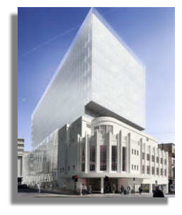 The former Odeon cinema in Glasgow's Renfield Street has been lying empty for the last two years while developers formulated various plans to capitalise on the building with its distinctive Art Deco frontage. Now the city planners have agreed that all but that facade, which wraps round the corner of the building, will be demolished. In its place will be a huge 11-storey-high glass office block which will dwarf the original frontage. The £100 million building is to be known as "Paramount" after the original name for the cinema on the site. There will be 150,000sq ft of office space, 20,000sq ft of restaurants and 20,000sq ft of leisure area. City planners hope the new development will help to regenerate an area of the city centre which is currently badly run down.