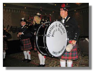 In Fargo, North Dakota, USA the St. Andrew's Society of Fargo/Moorhead has an annual St. Andrew's dinner on the first Saturday of November - in the hope that they avoid blizzards which can sweep in by the end of the month. This year, in the after dinner program, they did a poll to determine what song the people there favoured as a national Scottish song. The local pipe band, Heather & Thistle Pipes and Drums, played Scots Wha Hae, Scotland the Brave and O Flower of Scotland. The voting was tallied and later the band played the most popular tune - Scotland the Brave, with 92%. O Flower of Scotland got only 5%, and Scots Wha Hae, 3%. Those results are clearly very different from polls taken in Scotland where Flower of Scotland usually wins out. The organisers also noted that in a poll taken in Scotland people also chose Highland Cathedral and A Man's a Man for A' That. The band plays Highland Cathedral at the Kirkin' O' the Tartan service on the Sunday following the dinner, and their pipe major plays A Man's a Man for A' That to pipe in the haggis. For more on the St. Andrew's Society of Fargo/Moorhead see St. Andrew's Society of Fargo/Moorhead.