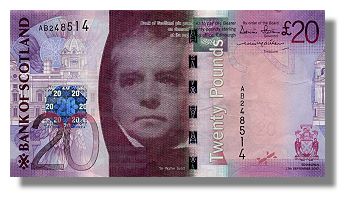 From time to time, the three Scottish commercial banks that issue their own banknotes produce a new design, usually to incorporate even more sophisticated security features to thwart potential forgers, as well as for marketing reasons. Unlike nearly every other country in the world where only the government issues banknotes through a central bank, Scotland has perpetuated the privilege of Bank of Scotland, The Royal Bank of Scotland and Clydesdale Bank being allowed to put their own notes into circulation. Within Scotland, around 95% of the banknotes we use every day are from these three banks (Bank of England notes make up the remainder). Recently, Bank of Scotland introduced a new design, incorporating a new metallic security thread, new holograms and strengthened corners to help them last longer. Their introduction will have followed rigorous testing and liaison with the other banks. But despite all that planning and the cutting-edge design, they are causing problems with a large number of automated machines in car parks, air terminals and vending machines that accept banknotes. The machines have to be reprogrammed to recognise the new notes - and that all takes time. The Scottish Parliament restaurant is one of the places where the machines just spit out the new notes - and the tourist attraction "Our Dynamic Earth" across the road refuses to recognise the notes in their underground car park. Most machines will eventually be updated, but some older and cheaper machines may never recognise the new cash because they do not have enough memory to be reprogrammed with a new set of notes. It will take about three years for the £800 million of the old-style Bank of Scotland notes to be replaced.