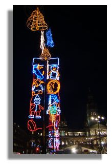 18,000 people gathered in Glasgow's George Square last Sunday to see the Christmas lights being switched on, followed by a firework display. This year, new environmentally friendly illuminations have been added to the display, creating even more to admire. Work on creating the ice rink in the middle of the square is not yet complete, so the full effect is not yet visible. Indeed, as the city council tries to cram more and more into George Square over the festive season, with a sound stage for the Hogmanay event and catering for the skaters, the traditional Christmas tree and decorations are losing some of their magic.