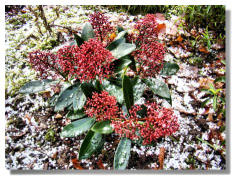 This week's large format photographs taken in Scotland to show the current season and its flora and fauna include a wintry-looking Edinburgh Castle, with grey skies and the rocks glistening in the rain; Scott Monument in Princes Street Gardens and the five-star Balmoral Hotel; the approaches to Waverley Station; the elegant houses of Ramsay Gardens; St Giles cathedral; hailstones on the ground providing an unusual backdrop to a Skimmia Japonica (see thumbnail here). See This Week's Colour Supplement.