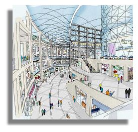 The St James Centre in Edinburgh, long regarded as a major eyesore, is to undergo an £850 million redevelopment, the biggest in the Capital for decades. The 1973 building is to be demolished to make way for a three-storey, crescent shaped shopping arcade, a public square, two hotels, luxury flats and new streets. An open-ended street would have a glass roof, with buildings clad in stone. Retail space in the centre would triple in size, with the present John Lewis store retained. The redevelopment covers not just the present indoor shopping mall but also the vacant offices at New St Andrew's House. There will be a public exhibition of the plans in the main shopping level of the St James Centre, as part of an eight-week consultation exercise, before an outline planning application and illustrative master-plan is submitted to Edinburgh Council in April. If approved, demolition could begin in 2010, and be completed in 2015.