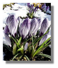 This week's large format photographs taken in Scotland to show the current season and its flora and fauna include the purple striped crocuses from last week, now surrounded by snow-covered ground; Snowdrops living up to their name, struggling through the snow; yellow crocuses also nearly covered by snow; a Robin looking a bit puzzled by the snow - but then accessing a peanut cake in a cage designed for finches; the height of the snowfall on Monday of this week in my garden. See This Week's Colour Supplement.