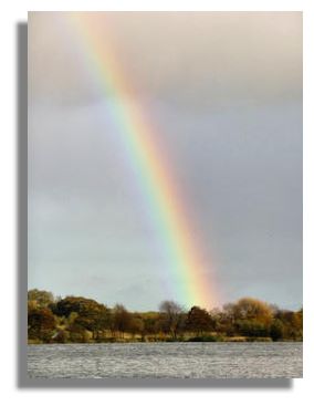 There were some sunny spells between the rain and the showers and sometimes both came along at the same time - producing a rainbow, as here at Hogganfield Loch in Glasgow.