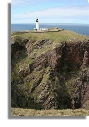 On the most north-westerly tip of the Scottish mainland on one of the UK's highest vertical cliffs. The lighthouse keepers' cottage is leased by a couple who, despite the remoteness, operate the "Ozone" cafe. In 2013 it had 6,000 visitors. See Cape Wrath Lighthouse