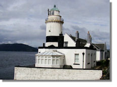 The Cloch lighthouse is on the shore of the Firth of Clyde, at the point where the river turns from flowing west to a southerly direction into the estuary and then the open sea. It was thus a well-known landmark for many who left Scotland to emigrate by ship to around the world - and a welcome sight for travellers returning to Scotland. See Cloch Point