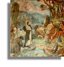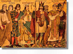 The major role of St Columba and Iona. Despite the reformation there are considerable numbers of churches dedicated to Columba (pictured here preaching to the Picts) in Scotland. See: Apostles of the Scots, Picts and Britons