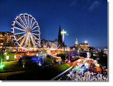 A selection of photographs taken in central Edinburgh of the Christmas decorations there, including the Ferris Wheel, Star Flyer, Balmoral Hotel (with the moon rising behind it). There is a commentary on each one.