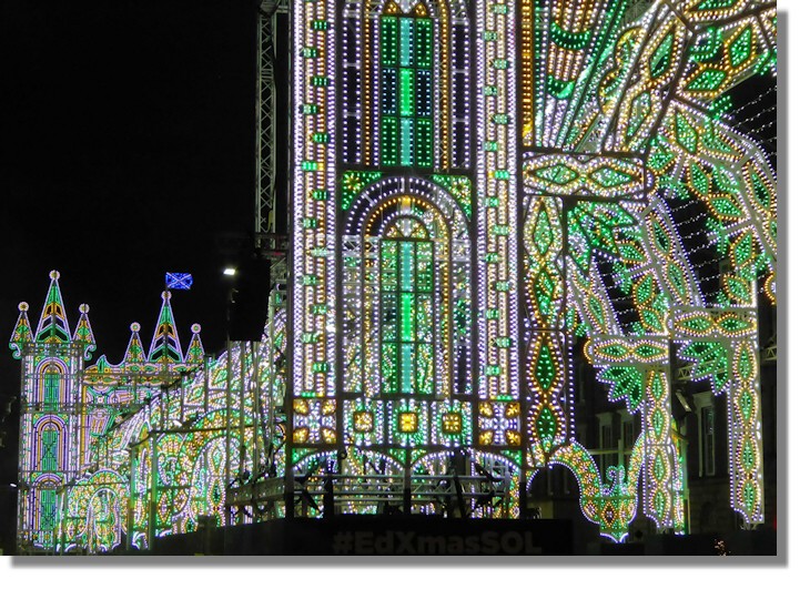 There have been a number of changes this year to the Christmas lights in Edinburgh - particularly the "Street of Light" in George Street which is spectacular! The castle and St Giles cathedral add their own distinctive character to the show as well. The Glasgow Christmas lights also had a major upgrade and were illustrated in the Photo Diary in December. See: Edinburgh Christmas Lights and (if you missed it earlier) Glasgow Christmas Lights
