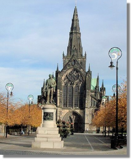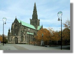 The original cathedral was built on the banks of the Molendinar Burn a tributary of the river Clyde by St Mungo but the first building was destroyed by fire. The present cathedral was started in 1197 but was expanded and reconstructed in the 15th century. The cathedral is 285 feet long and has an open timber roof dating from the 14th century. See: Places to Visit - Glasgow Cathedral
