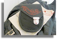 Now she produces a range of upmarket sporrans and accessories, using a range of unconventional materials. She particularly favours Lorica - a hardwearing leather substitute form Italy.