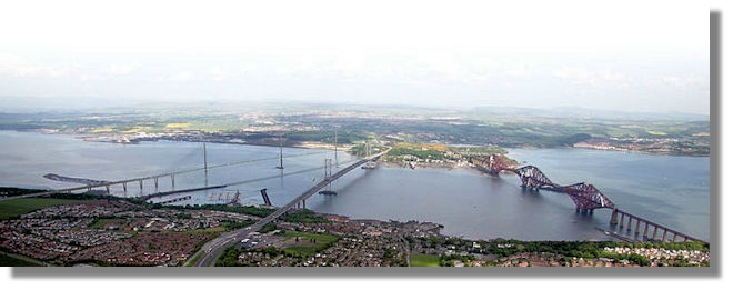 Artist's Impression of new Queensferry Crossing on the left and other Forth Bridges