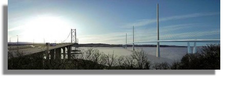 The artist's impression here is from the north of the estuary and shows the new crossing on the right and the present road bridge on the left).