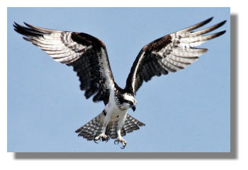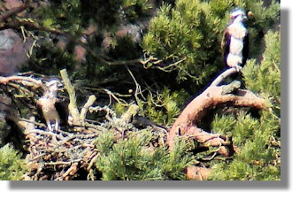 Ospreys (also known as fish eagles) grow to over two feet in length and have a wing span of around 5 feet. The picture on the left is of an osprey pair at Loch of the Lowes Visitor Centre and Wildlife Reserve near Dunkeld in Perthshire.