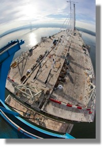 Recent reports, however, show that all three of its towers and decks have been lifted into place closing the remaining gap of about 50 metres (the equivalent of an Olympic-sized swimming pool) and work on the final stage is set for January.