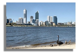The picture here of the Perth skyline and Swan River is via Wikimedia.