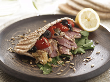 The chefs at the award-winning Rannoch Smokery based in Kenmore, Perthshire have created a wide range of recipes using their smoked venison, poultry, game and salmon products. The recipes have been tried and tested and the company has kindly agreed to allow some of them to be included in the Rampant Scotland recipe section. Here's one for smoked goose with houmous, olives, peppadews and scattered seeds in toasted pitta bread to try!