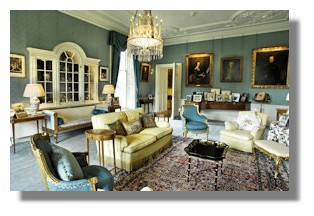 Time to explore the house - our house for a couple of days. Guests have the privilege to settle in and feel at home, to relax in the drawing rooms and library and stroll around the garden. This is a family home with portraits, photographs, furniture and exotic treasures collected and inherited down the centuries. It's like a time travel journey as you walk from room to room, sweeping through the centuries from Mediaeval Great Hall to ornate Georgian drawing rooms. The interior design of the State Rooms created in the 1950s by John Fowler of Colefax and Fowler, was refurbished according to this original decorative style. Fowler's artistic influence can be seen in the beautiful Blue Room which features his distinctive wallpaper, hand blocked in France for the redecoration, and the vibrant Yellow Room where the soft colour gives the perfect backdrop for the display of paintings by Van Dyck, Raeburn and Canaletto, fine antiques, porcelain and photographs.