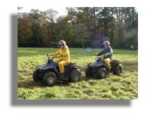 We first tried our hand at quad biking which might look like children's go-carts but are powerful machines. The training instructors managed to make it safe while still being challenging - just on the edge of scary. They did say that we were a competent group of drivers and would not take everyone down some of the steep drops we did - but perhaps they tell everyone that! Great fun charging across the meadow to reach the start of the woodland trail until one guy hit a wet boggy patch and sunk, axle deep in the mud and had to be towed out. After a fast tour around forest tracks and over streams, we zipped back to the house like knights on lively steeds with mud and leaves flying everywhere and the thrill of the charge still singing in our blood over the roar of engines. You may have tried clay pigeon shooting, popular at many country house hotels. At Lennoxlove it's environmentally friendly high tech Laser shooting. The rifles feel the same but there are no bullets; you aim and fire at the clay pigeon but with ingenious laser "ammunition", there is no hard kickback on your shoulder. One enthusiastic girl was a natural shot, hitting about 99% of targets and when the points were tallied from all games, our team won the day with a presentation of medals.