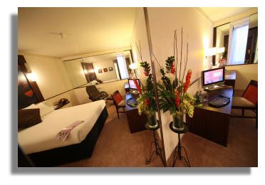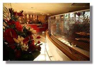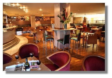 Bagio Restaurant on the ground floor opposite reception is open daily for breakfast, lunch and dinner (6.30pm - 10.30pm) catering for all the travellers coming and going, day and night. This is an Italian restaurant, featuring a traditional wood fired oven to bake classic home made pizzas. The layout of small blond wood tables in neat rows and severe bright lighting is more like a café than a traditional cosy trattoria. For a more private space to eat, I selected a comfy leather banquette seat at a large table at the side and settled down with a glass of chilled Sauvignon Blanc to study the menu. On this Sunday night Bagio had a fair number of diners, mainly single people, perhaps jetting off the next morning on a business trip. They cater well here for solo travellers and there's also 24 hour room service - ideal for those arriving late at night.The selection offered such Italian favourites as Minestrone soup, Melon and Parma ham, Bruschetta and Cannelloni - but could I have a simple mixed salad, I enquired as I wanted to sample the speciality Pizza al Forno, with just a light starter. No problem said the waiter. Five minutes later, a bowl of crisp lettuce and rocket leaves, chopped peppers, fresh and sun dried tomatoes, avocado, olives and sprinkled with parmesan cheese. Perfect. As well as a choice of pizzas, you can tailor your own with a choice of extra toppings. I invented a new one - a Margherita (tomato, mozzarella and fresh basil) with added mushrooms and prawns. A gourmet dish indeed, freshly made and baked in the oven which I enjoyed with a glass of l'Emage Merlot.