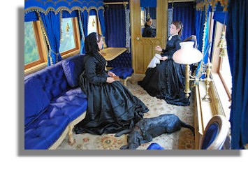 Fortunately some artefacts survived. A replica of Victoria's train carriage was intact (graphic shown here is © Nigel Corby via http://commons.wikimedia.org/wiki/Main_Page, along with a horse-drawn carriage on loan from Balmoral. So, too, was a figure of the queen, dressed in mourning for Prince Albert, and, beside her, still pristine in his ghillie's kilt and jacket, John Brown, her beloved manservant.