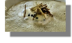 As a starter, Scottie had ordered the "foraged wild Scottish leek and rooster potato soup with smoked herring roe cream" and looked visibly surprised when a large soup plate arrived with just some cream sitting in the middle. Then the soup arrived - in a dinky little jug and poured with great style into the plate - causing the cream to float to the top. The flavours and textures were just as impressive and surprising and got the taste buds into overdrive.