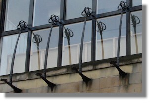 Thankfully, as a result of excellent work by the local Fire Service, 90% of the building was saved, but most of the Mackintosh material in the library was destroyed - tables, chairs and the amazing light fittings. The good news is that reproductions can be created which will retain the spirit of the original, even if the patina caused by use for over a century will be absent. The illustration here of a light fitting is from "House for an Art Lover" in Glasgow designed by Mackintosh but construction did not begin until 1989.