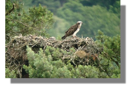 Osprey at Loch of the Lowes, graphic © Hugh Venables via Wikimedia Commons