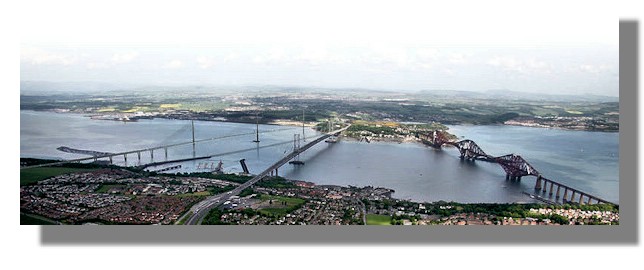 An artist's impression of the new Queensferry Crossing (on the left) and the existing road and rail bridges