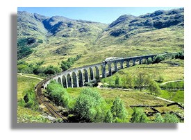 From the gentle lowlands this is now serious Highland country, through Glen Falloch with glimpses of dramatic rocky waterfalls amid verdant pine forests. Travelling on to Crianlarich, the gradient ascent is 500 ft in five miles, slowly descending to reach to follow the curving Horseshoe viaduct - a wonderful sight. From here we head across the dramatic, bleak yet beautiful Rannoch Moor where you may well see herds of wild deer. The isolated station at Corrour (featured in the movie "Trainspotting"), is the highest point on the West Highland line. The train then descends into a low lying valley following the River Spean towards Loch Linnhe and the town of Fort William in the shadow of the mighty Ben Nevis mountain. A private transfer by mini bus takes us on a short drive to the "Scottish Highlander" moored at Banavie.