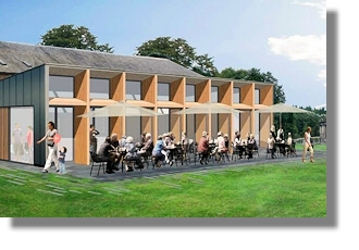 The park is currently (2015/16) undergoing a multi-million pound redevelopment which will create an exciting new adventure park, café, restaurant, shopping and "wellness" space. The former stables is being renamed the "Restoration Yard" and the adventure playground will be named "Fort Douglas". The original clock in the stables which are being refurbished to create these new facilities is shown on the left. The Restoration Yard" will have two floors of shopping, embracing a diverse retail mix from lifestyle to fashion to children´s, alongside a dramatic, glass-walled restaurant space looking out across the river Esk. See artist's impression below.