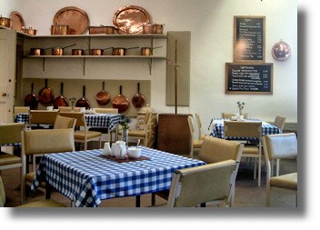 The main Tearoom at Drumlanrig (pictured here) was once the original kitchen of the Castle with its traditional flagstone floor. Visitors can now relax there with a coffee and cake or enjoy a bite of light lunch of sandwiches, toasted muffins and paté beside a display of gleaming antique copper kitchenware. I can recommend the lunchtime soup and crusty bread in the Tearoom!